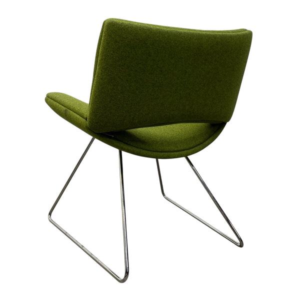 'Jolly' designed by Komac for the Boss Design Group is a stylish & fun breakout chair that offers a high level of comfort. It's striking organic appearance & smart quality wool upholstery is ideal as an occasional chair for a sitting, reception or office environment. The chair sits on a polished steel base & is in good condition.